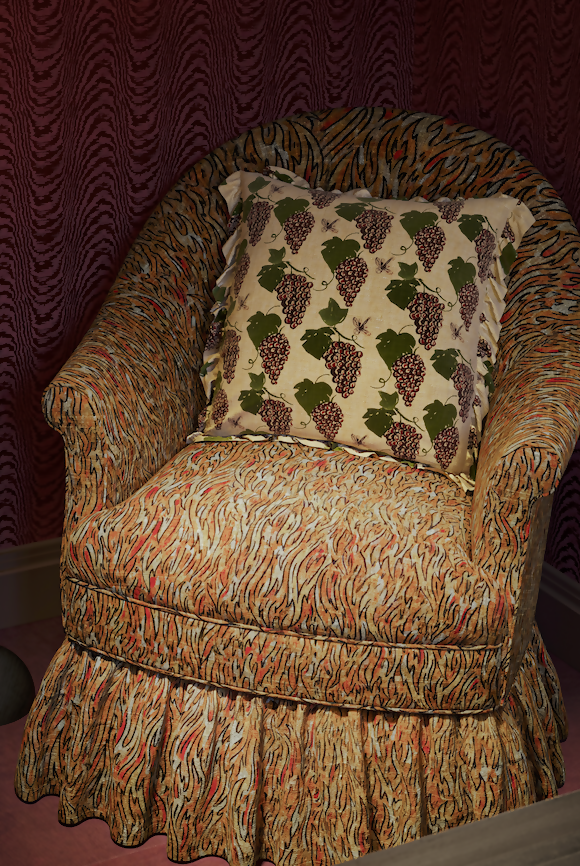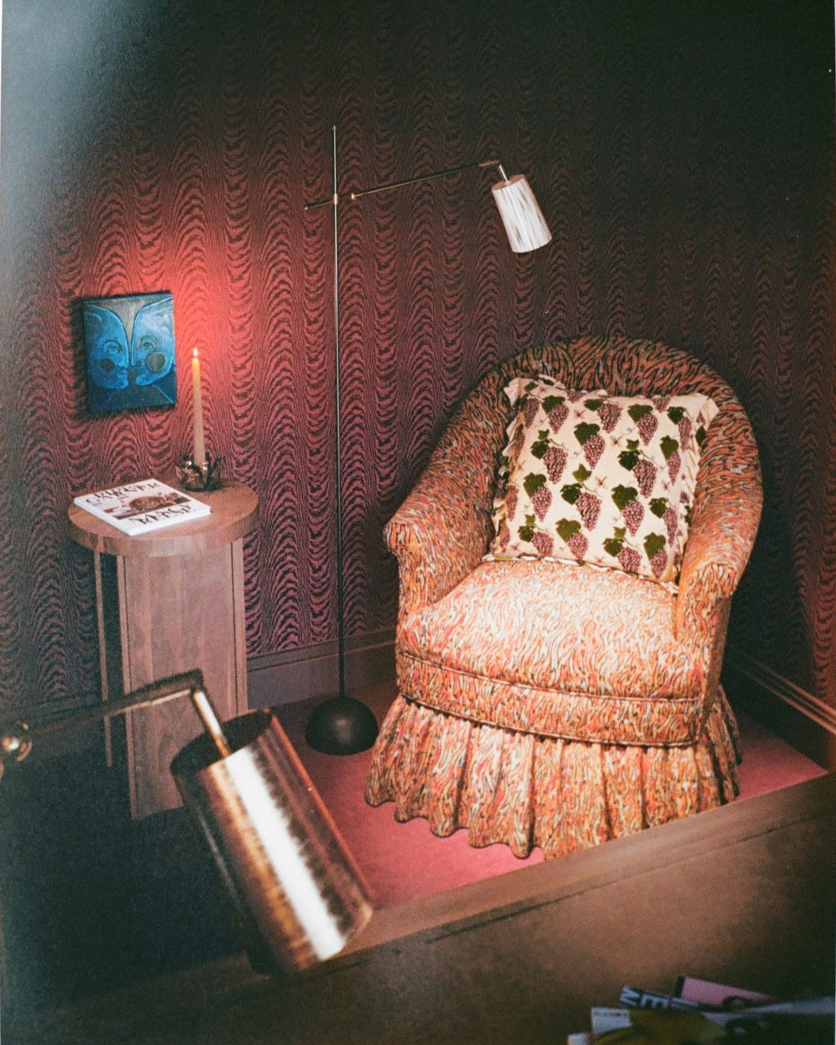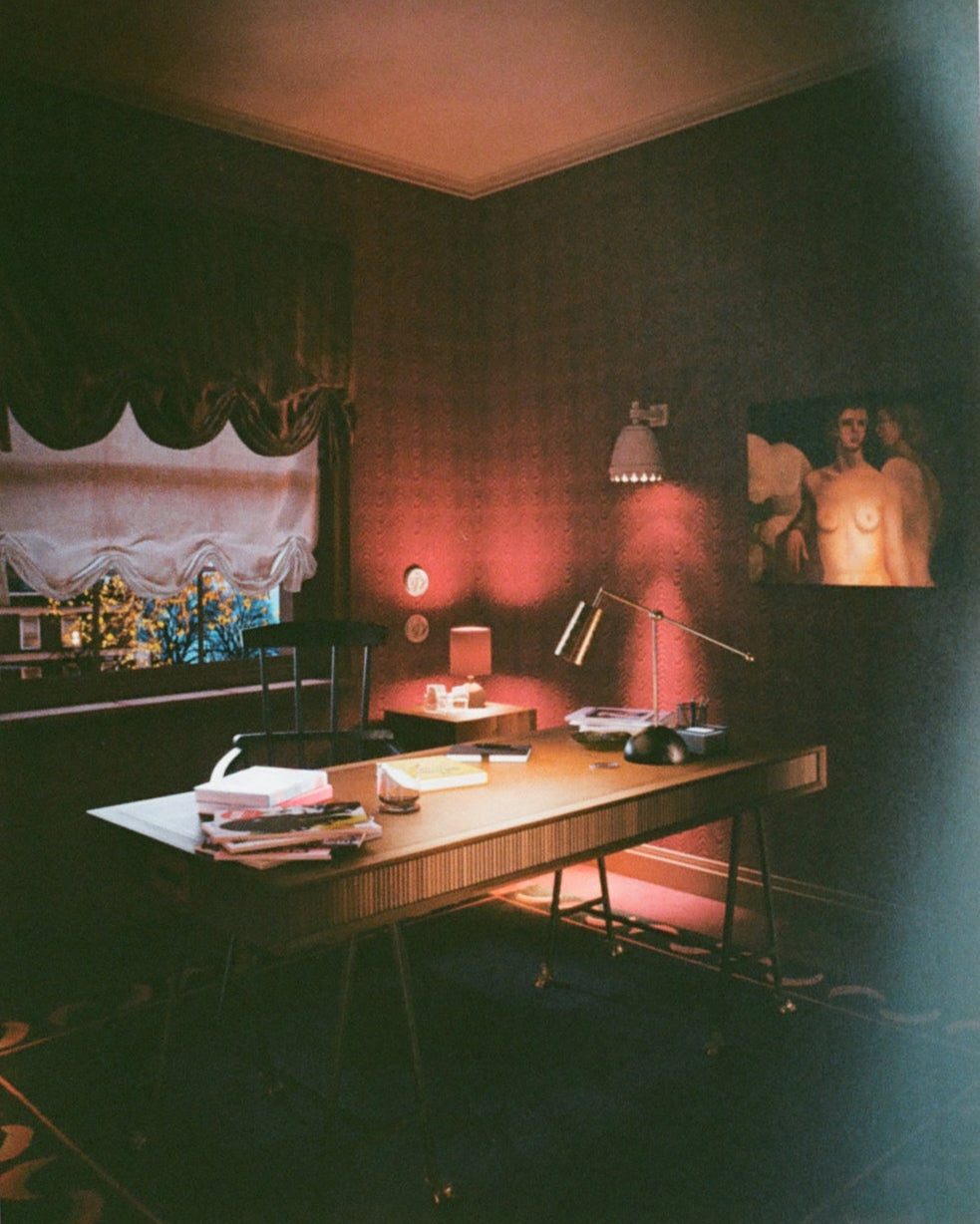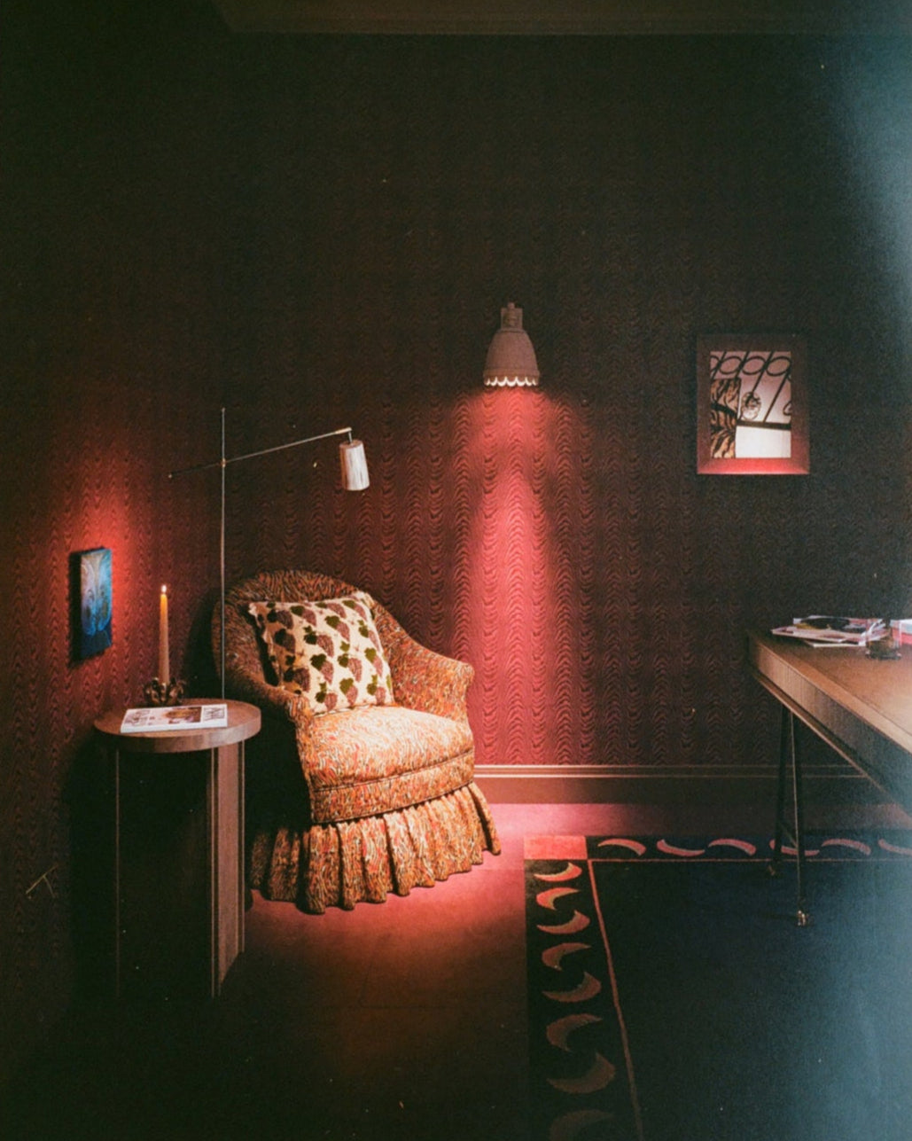 SALON RED STUDY, LEATHER AND MOIRE