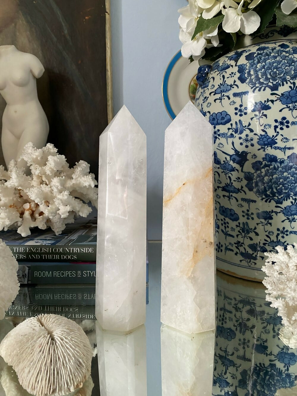 PAIR OF NATURAL CRYSTAL OBELISKS (25CM) BY RELIC INTERIORS